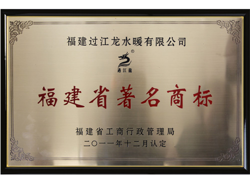歲末年終,過江龍水暖再傳捷報,2011年12月6日,福建過江龍水暖有限公司被福建省工商局認定為福建省著名商標。