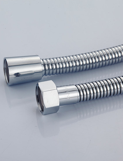 過江龍加密淋浴管兩頭全銅配件,表層采用不銹鋼帶加工而成,通過拋光鍍鉻處理,使軟管熠熠生輝,光彩動人,外觀高檔大氣。內管采用優質三元乙丙膠加工而成,具有壽命長等優點。雙扣管具有彈性好、耐腐蝕、光澤度高,均勻舒適等優點。
