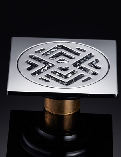 D011不銹鋼電鍍地漏優勢:面板靈感源自中國傳統窗花剪紙的元素,主體、面板使用不銹鋼拋光電鍍工藝、防臭芯使用銅材。地漏防臭芯使用全銅T型防臭芯,排水速度快,防臭效果好。