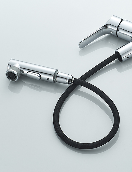 ? 兩種水流切換功能,輕輕一按,柱狀水、花灑水,按需求切換,讓洗滌更順暢;