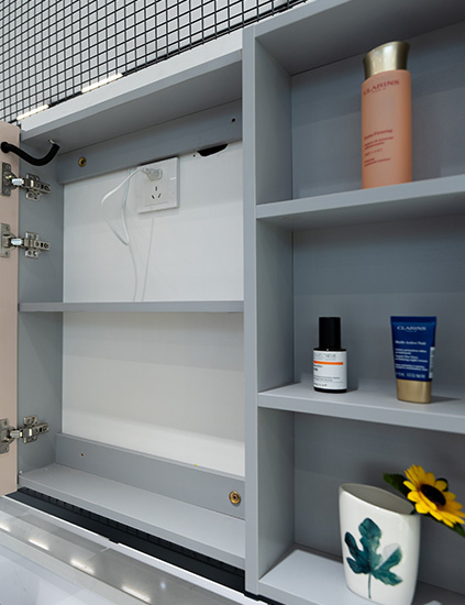右側(cè)鏤空鏡柜,擴(kuò)容存儲(chǔ)空間,放取自由。